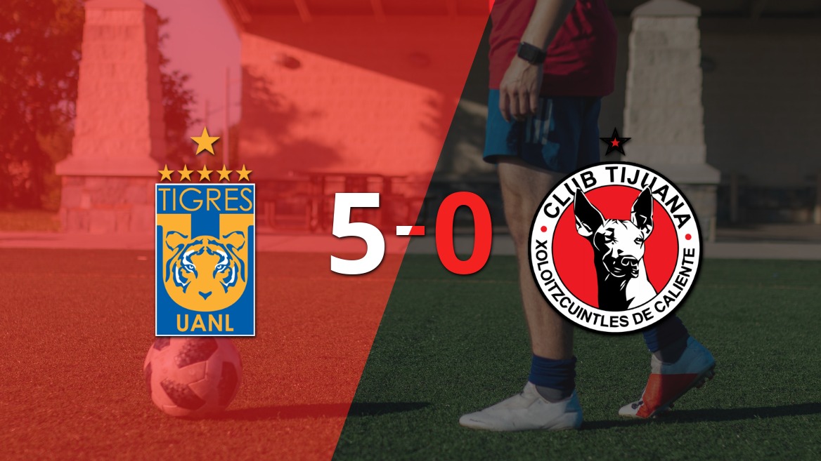 En un emocionante encuentro en el estadio El Volcán, Tigres UANL se impuso 5-0 a Tijuana, asegurando su lugar en las Semifinales de la Liga MX. La estrella del partido fue Juan Brunetta, quien anotó dos goles, uno de penal, y mostró su gran capacidad ofensiva con seis disparos al arco. Además, Nicolás Ibáñez abrió el marcador temprano en el partido, mientras que Ozziel Herrera y Juan Pablo Vigón sellaron la goleada en la segunda mitad. A pesar de un penal fallado por Herrera, Tigres mantuvo el control del encuentro en todo momento. El técnico Guido Pizarro optó por una formación ofensiva que les dio réditos inmediatos. Con una defensa sólida y un mediocampo cohesionado, los Felinos demostraron por qué son uno de los equipos a vencer en este torneo. Tigres ahora espera conocer a su próximo rival en la búsqueda del campeonato. ¡Gran despliegue de fútbol en la noche del Volcán! 🌋⚽