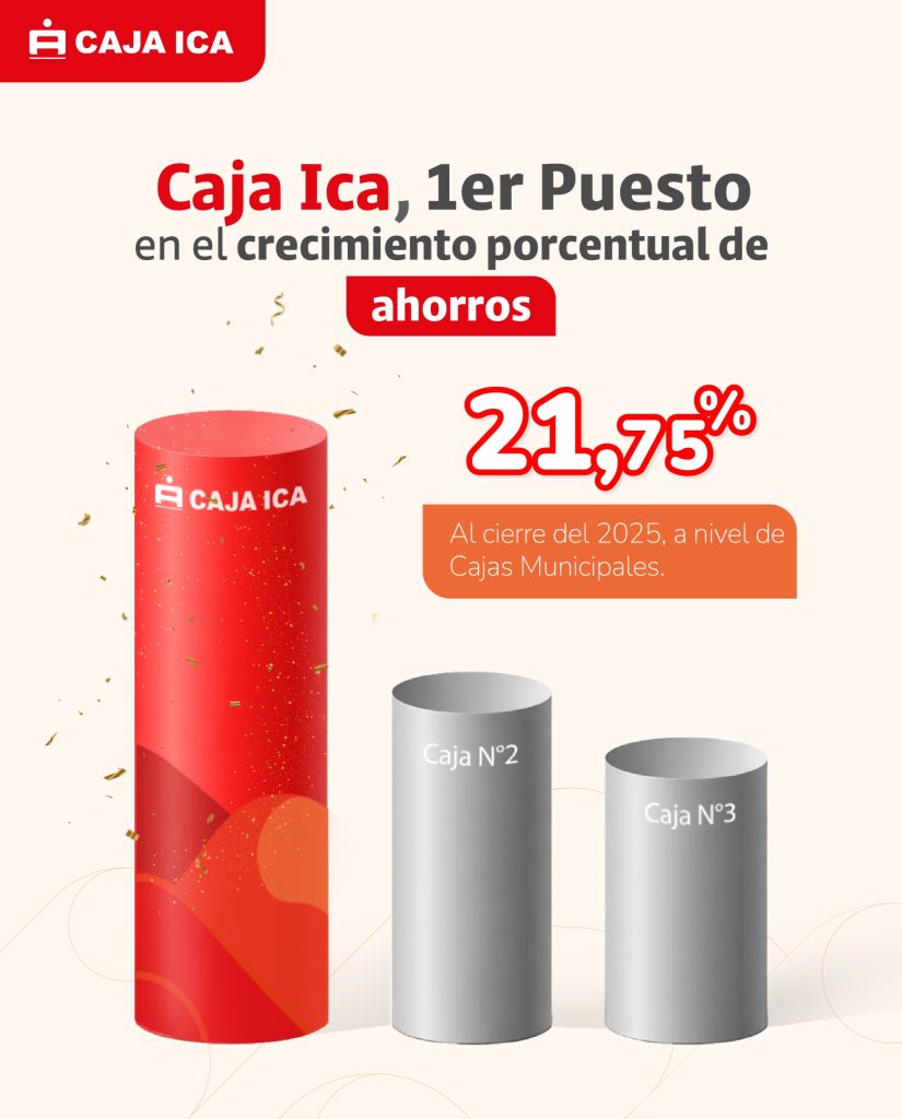 Caja Ica reafirma su solidez financiera y la confianza de sus clientes al posicionarse en el primer lugar del sistema de Cajas Municipales en relación a la variación de la cartera de ahorros, en el mes de Diciembre 2025 y al cierre del ejercicio 2025, según el último reporte de Estadísticas Rápidas de la Federación Peruana de Cajas Municipales de Ahorro y Crédito (FEPCMAC), que evalúa el desempeño de las 10 Cajas Municipales del país.