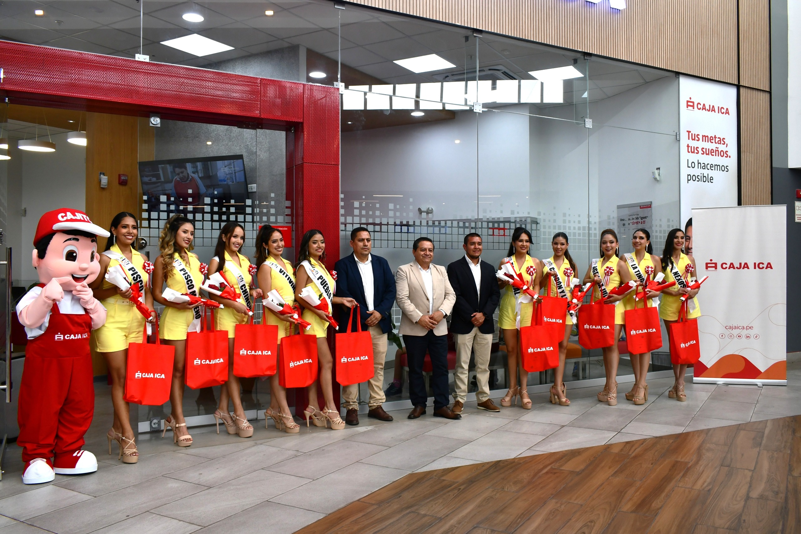 En el marco de las actividades previas al FIVI 2026, las candidatas al Reinado realizaron una visita protocolar a la tienda de Caja Ica en Mega Plaza Ica, poniendo en valor el compromiso de la institución con una de las festividades más representativas de la región, de la cual es auspiciador oficial.