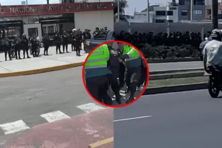 Un fuerte despliegue policial se reportó en San Marcos y PUCP durante una marcha contra la criminalidad. Un estudiante ha sido detenido. #Protesta #Policía #SanMarcos