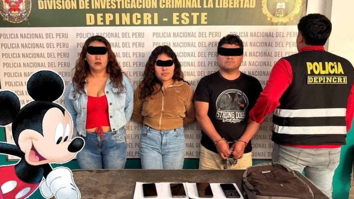 La Policía Nacional del Perú (PNP) logró capturar a tres presuntos integrantes de la organización criminal liderada por alias ‘Mickey Mouse del Crimen’. El operativo se realizó en el distrito de Alto Trujillo, donde se detuvo a un hombre y dos mujeres que estaban encargados de recolectar información de posibles víctimas, realizar llamadas amenazantes y administrar herramientas tecnológicas para llevar a cabo las extorsiones.