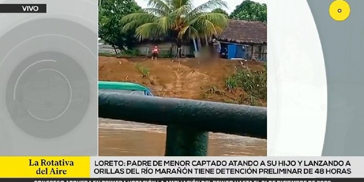 **Indignante**: Un hombre fue grabado amarrando a su hijo y arrojándolo al río Marañón, lo que ha desatado una oleada de repudio en las redes sociales. Tras la difusión del video, el Ministerio Público del Datem del Marañón, en la región Loreto, procedió a la detención preventiva del sospechoso por un periodo de 48 horas.