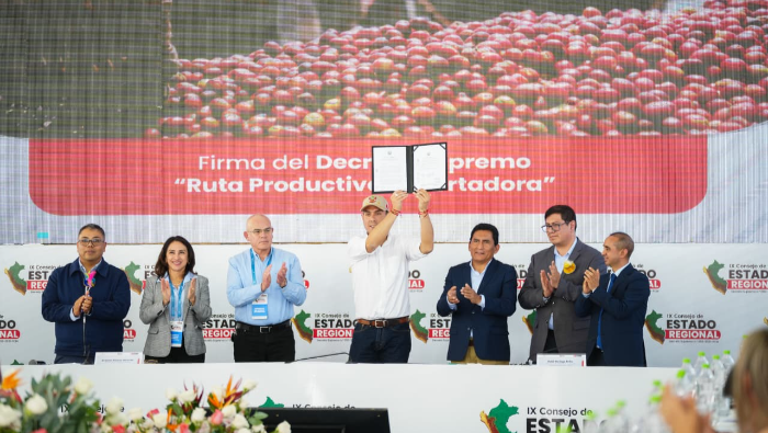 Durante el segundo día del IX Consejo de Estado Regional (CER), realizado en la ciudad de Huánuco, el presidente de la República, José Jerí, firmó un decreto supremo que fortalece la estrategia multisectorial Ruta Productiva Exportadora (RPE), liderada por el Ministerio de Comercio Exterior y Turismo (Mincetur), con el objetivo de elevar la competitividad de distintas cadenas agroexportadoras del país y promover el desarrollo de más de 6000 mipymes.