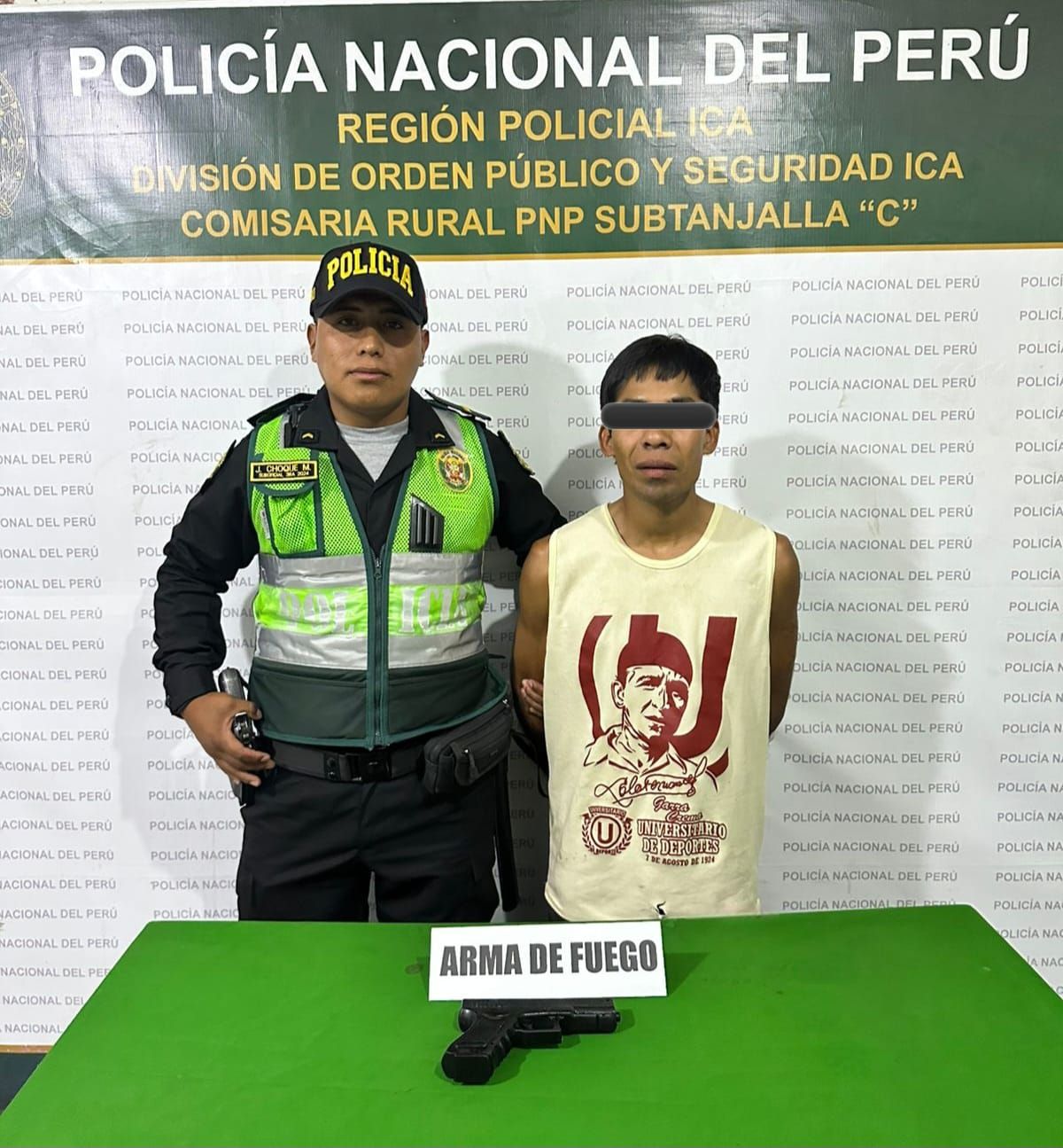 Una rápida y efectiva intervención del personal de la Comisaría PNP Subtanjalla permitió la captura en flagrancia, durante la noche del martes 03 de febrero, de Javier Germán Siguas Pineda (27), por la presunta comisión del delito de robo agravado con arma de fuego en grado de tentativa.