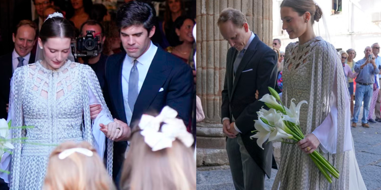 Una de las características más sobresalientes de la ceremonia fue la fusión de tradiciones. Mientras que el entorno y parte de los asistentes reflejaban la elegancia clásica de la aristocracia española, el vestido de Micaela Belmont fue un homenaje a sus raíces peruanas, inspirándose en los trenzados andinos y en técnicas textiles ancestrales de nuestro país. Esta elección no solo subrayó su orgullo por su herencia, sino que también destacó la riqueza cultural que Perú aporta al evento.