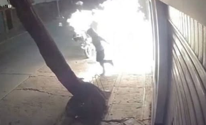 De acuerdo con las imágenes captadas por las cámaras de seguridad del sector, el presunto delincuente llegó al lugar conduciendo una motocicleta. Acto seguido, roció combustible en la puerta de ingreso del local y le prendió fuego, en un acto que buscaba provocar un incendio de mayores proporciones. Sin embargo, el fuego se extendió con rapidez y, en un giro inesperado, también alcanzó al atacante, quien –según se observa en las grabaciones– escapó con evidentes signos de haber sido afectado por las llamas.