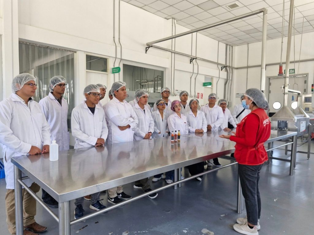 Durante el recorrido, los alumnos visitaron los laboratorios de análisis y control de calidad, la planta piloto agroindustrial y las áreas de innovación y asistencia técnica. En cada espacio recibieron explicaciones detalladas sobre los procesos productivos, sistemas de aseguramiento de la calidad y tecnologías de última generación utilizadas para la elaboración de productos como néctares, jugos, vinos y piscos.